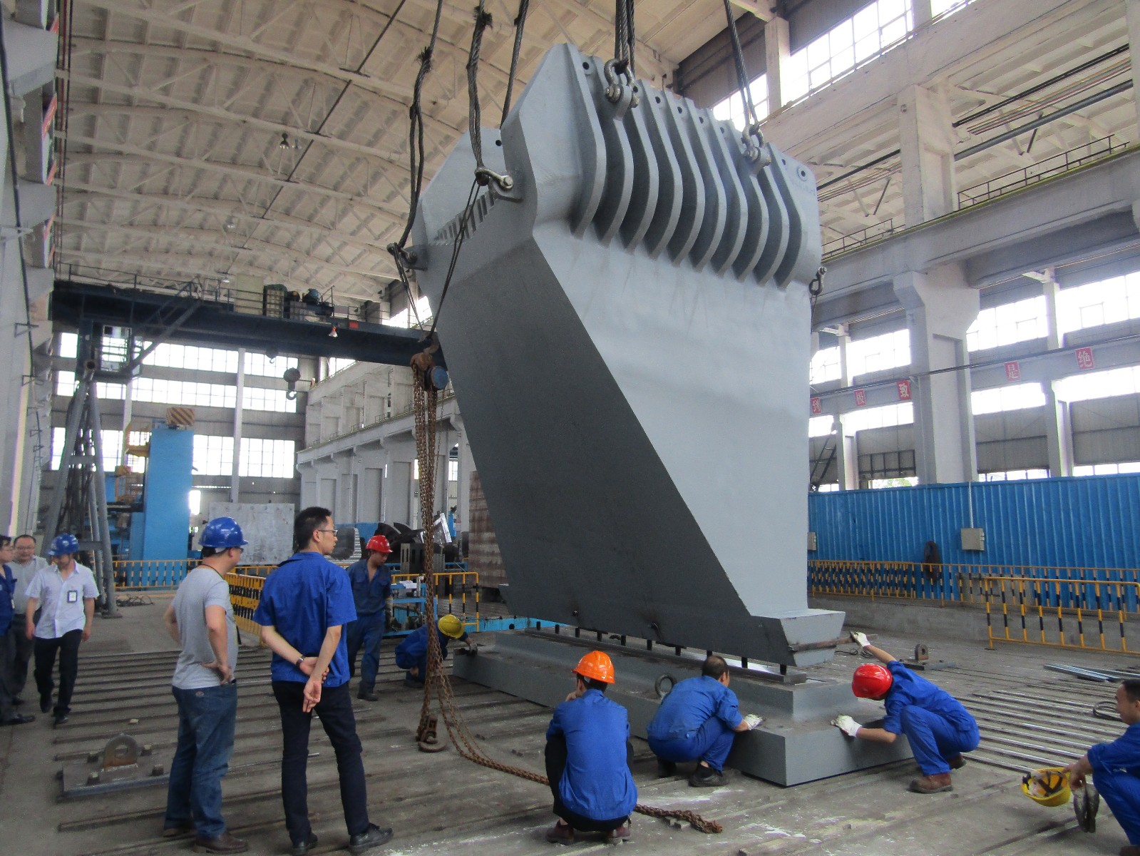 本次擺動試驗中散索鞍總重量達120余噸,試驗復雜、難度大、危險程度高,在沒有成功經驗可借鑒的情況下,現場工作人員冒著當時近40度的高溫酷暑,歷時4天,在駐廠監理工程師的見證下,所有數據滿足設計要求,取得了圓滿成功。該實驗成為公司發明專利(專利號ZL201610712350.X)的原型實驗,并為公司以后承攬更大的項目積累了經驗,意義重大。